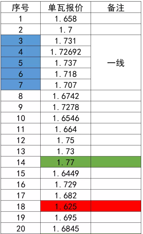 值得注意的是,在产业链价格持续上涨的周期内,大部分二三线厂家的价格普遍低于一线,在此次投标中,最低价1.625元/瓦来自于一家二线组件企业,大部分低于1.7元/瓦的报价也均来自于二三线厂家,不过从整个价格区间来看的话,各家的报价已经相对集中。