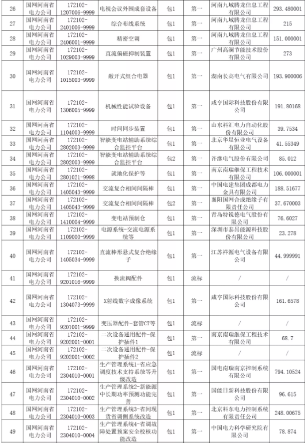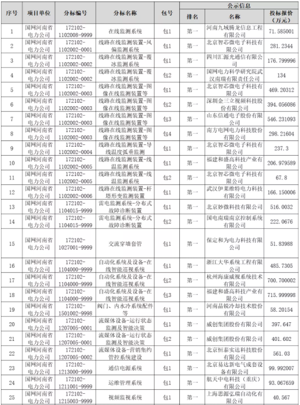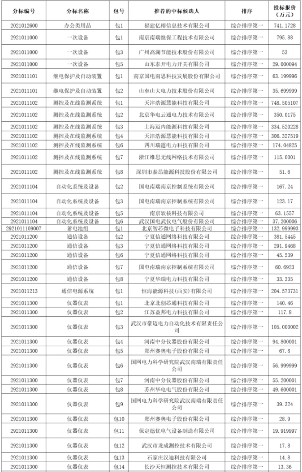 国网河南省电力公司2021年第二次物资招标采购推荐的中标候选人公示