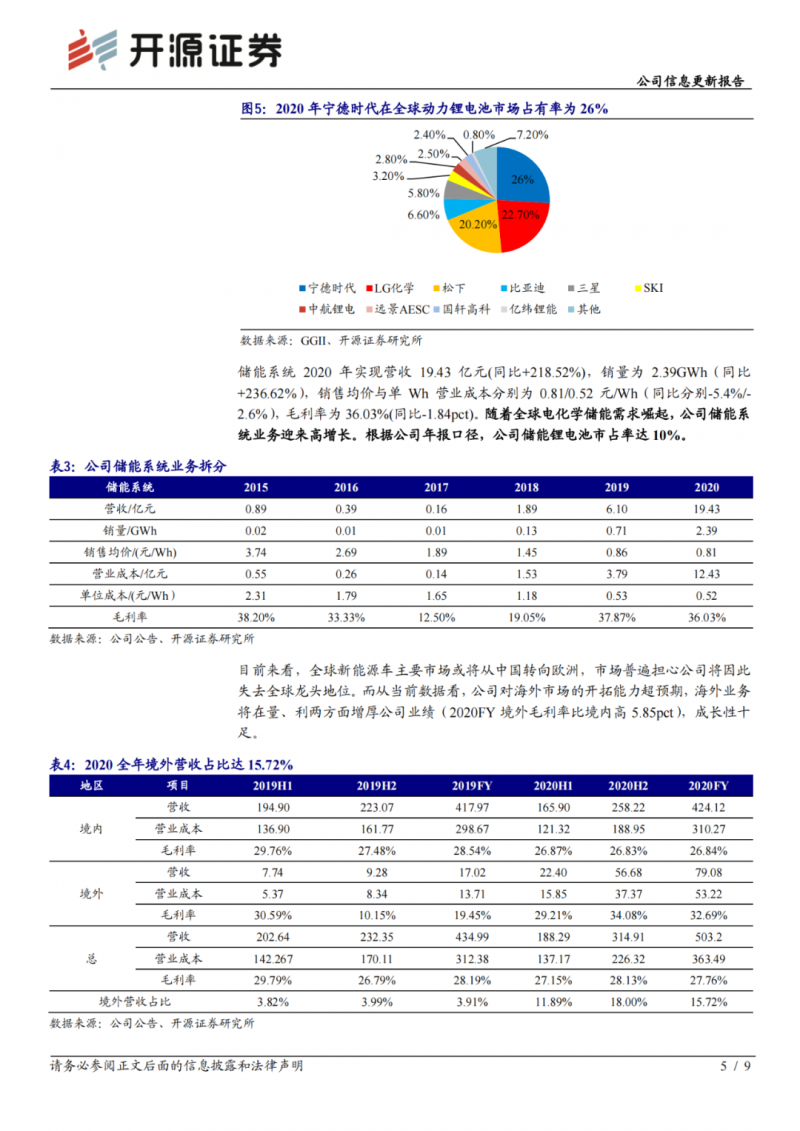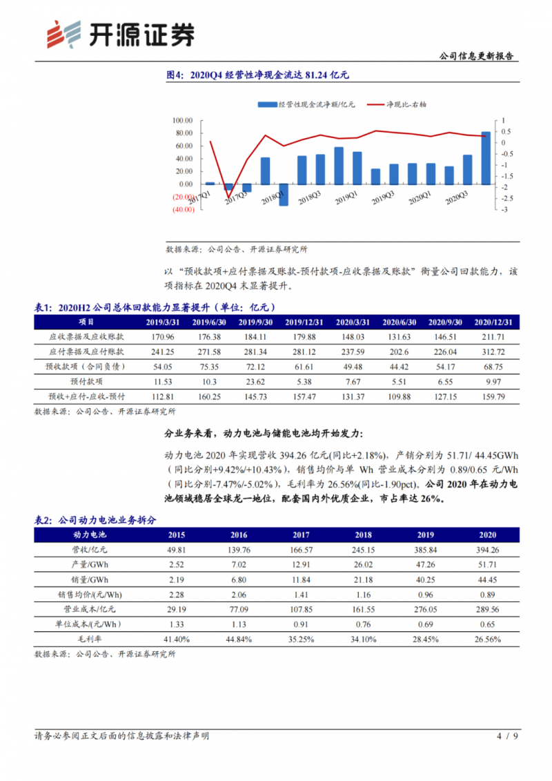 ● 动力与储能锂电池业务双轮驱动,成为全球锂电王者地位。动力电池2020年实现营收394.26亿元(同比+2.18%),产销分别为51.71/44.45GWh(同比分别+9.42%/+10.43%)。