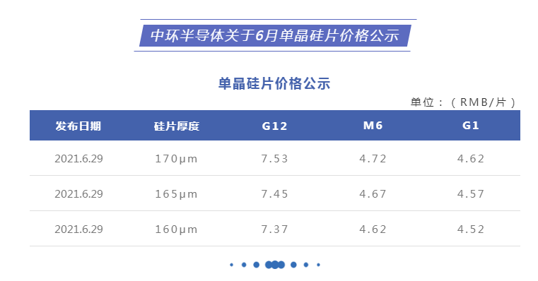 因近期全球光伏组件装机乏力,下游电池、组件环节成本高企,中环半导体从即日起调整单晶硅片价格。