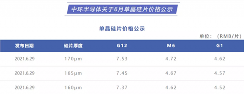 6月29日,中环公布了最新的硅片报价,与5月31日公布的价格相比,中环最新报价集体下跌,其中M6以下硅片价格下跌0.41元,G12型硅片更是下跌0.69元!