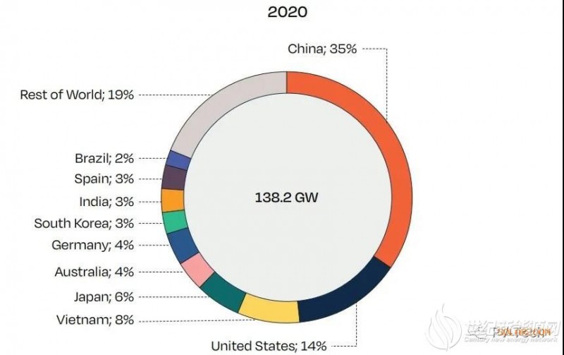 去年的太阳能开发量达到138.2GW, 较2019年增加了18%,创下纪录。