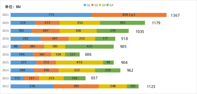 根据法国生态转型部 (MTE) 数据,2021 年上半年,法国有1.367GW的太阳能光伏项目并网,今年第一季度,新增光伏装机量为713兆瓦,第二季度为654兆瓦。截止6月底,该国光伏累计装机量已达12.6GW,与其制定的到2030年实现20GW的装机目标仍有较大差距。