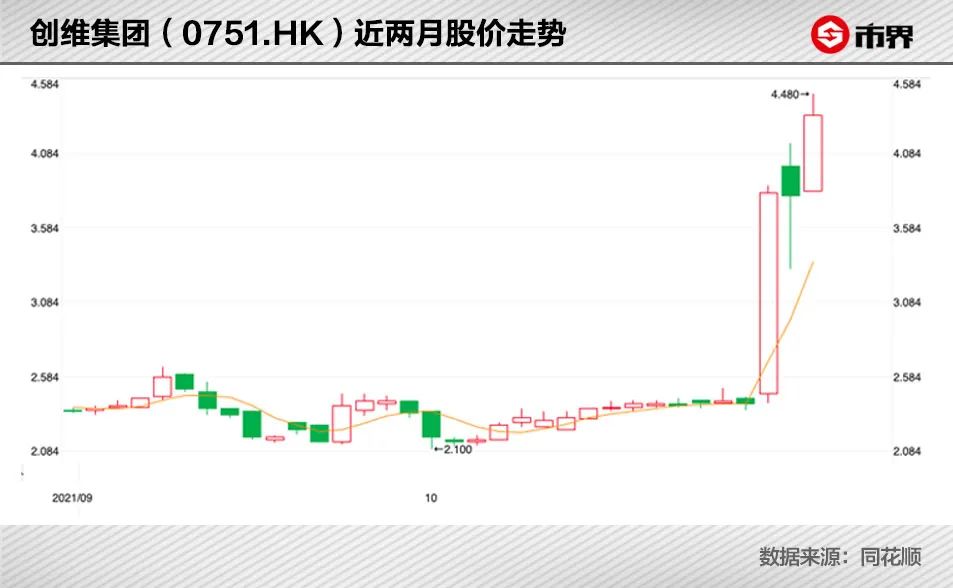 10月27日,创维集团股价即大涨59.17%;10月29日,再次大涨14.21%,市值跃升至115.80亿港元。