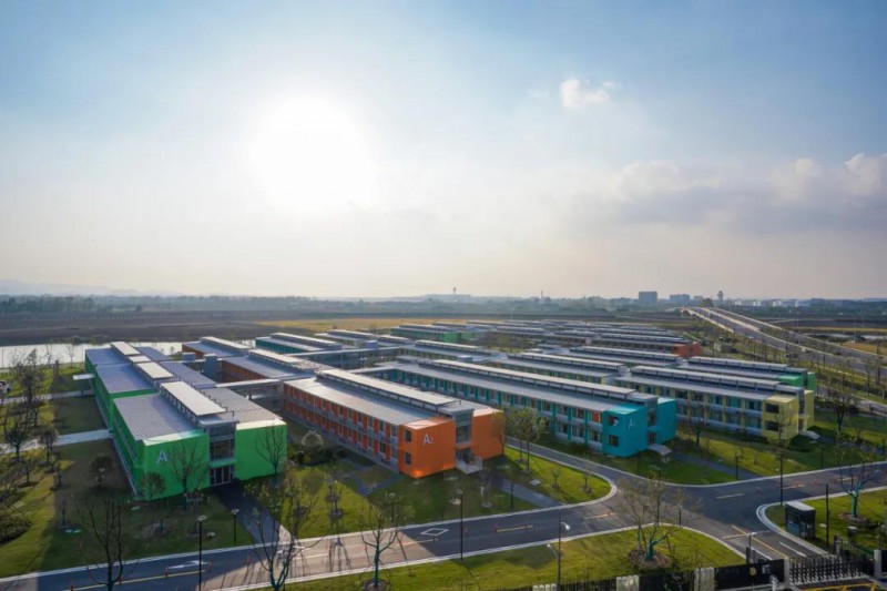 缤纷色彩炫目跳跃,园区环境自然清新,内部设施周到温馨。这里是位于南京溧水区的“宁归来”应急隔离首站公寓,距离禄口机场3公里,总建筑面积约16万平方米,房间2000个。具备住宿、隔离观察和后勤服务等多种功能,为相关人员提供人性化、规范化、智能化的健康监测服务,是补齐当前疫情防控短板、筑牢外防输入防线的重要举措。疫情防控十分重要,绿色发展也是国家“双碳”战略目标下必然选择。宁归来首站公寓在规划之初便以绿色发展、低碳用能为理念,在屋顶建设900kW分布式光伏电站,满足公寓日常用电需求,固德威为项目提供零碳智慧能源解决方案,为疫情防控擦亮绿色生态底色,也成为公寓的一张名片。