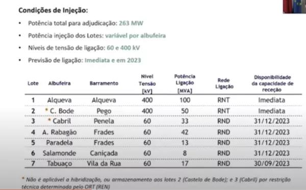 在此次拍卖中,263兆瓦将分配给七座不同的大坝:阿尔克瓦(50兆瓦)、博德城堡(33兆瓦)、卡布里尔(33兆瓦)、拉巴戈阿尔托(42兆瓦)、帕拉代拉(13兆瓦)、萨拉蒙德(8兆瓦)和塔布阿索(17兆瓦)。