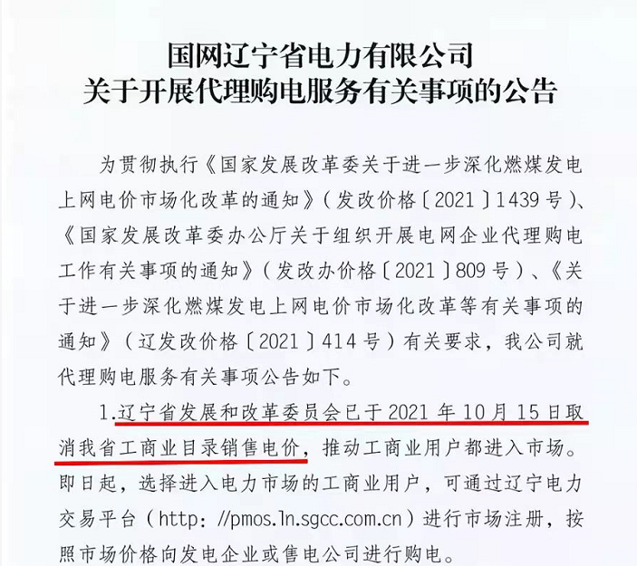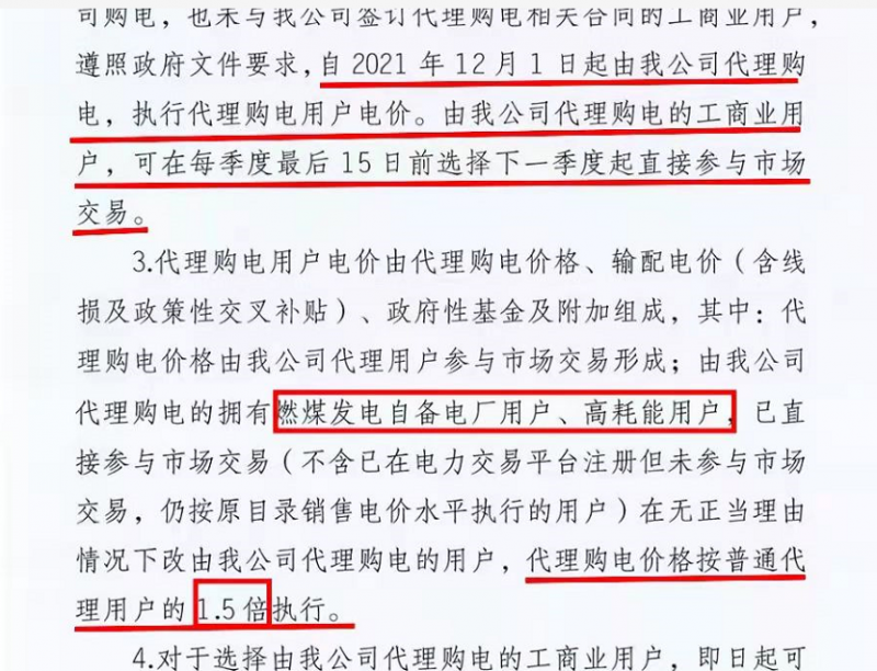 而从10月下旬到11月上旬,公开信息显示,至少已有江苏省、北京市、山东省、浙江省、黑龙江省、山西省、江西省、湖北省、辽宁省、甘肃省、安徽省、内蒙古自治区等12省市的国网电力公司下发代理购电相关文件,其中进一步明确,高耗能企业代理购电价格一律为1.5倍。