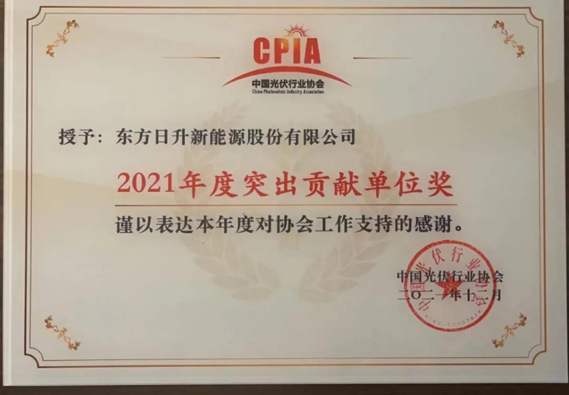 14日晚,东方日升还被协会授予“2021年度突出贡献单位奖”。未来,东方日升将继续充分发挥企业在高功率组件的领先技术,助推广大用户投入脱碳事业,发展区域绿色经济产业链,为如期完成双碳目标贡献力量。
