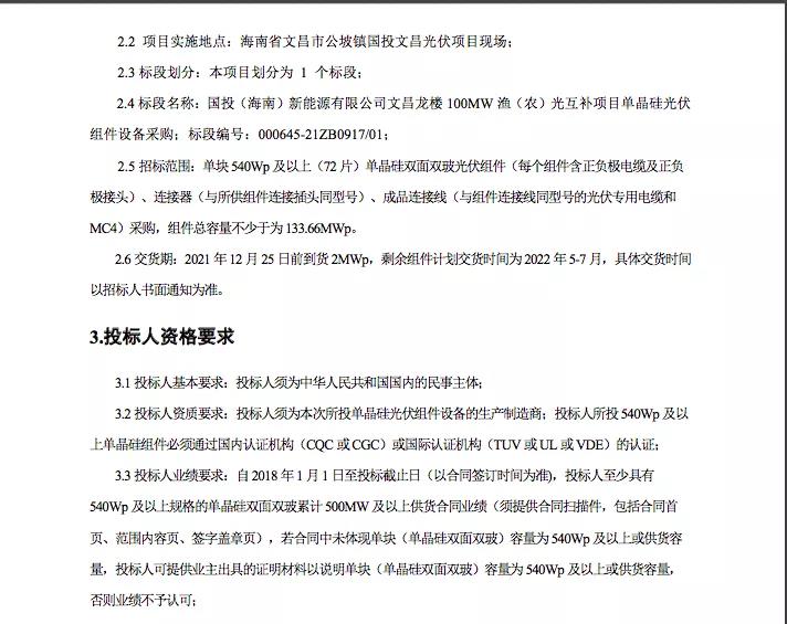 据了解,本次光伏组件集采规模为133.66MW,组件规格为540W+双面,供货期为12月25日前到货2MW,剩余组件交货期在明年5~7月。