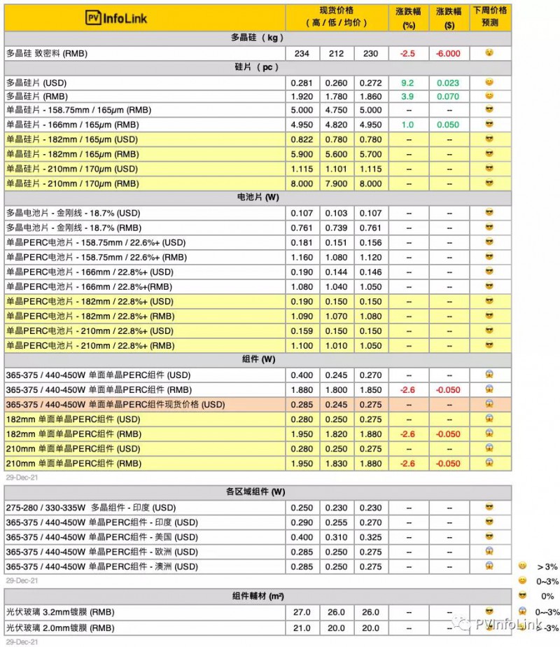 原标题:【周价格汇总】本周光伏供应链价格