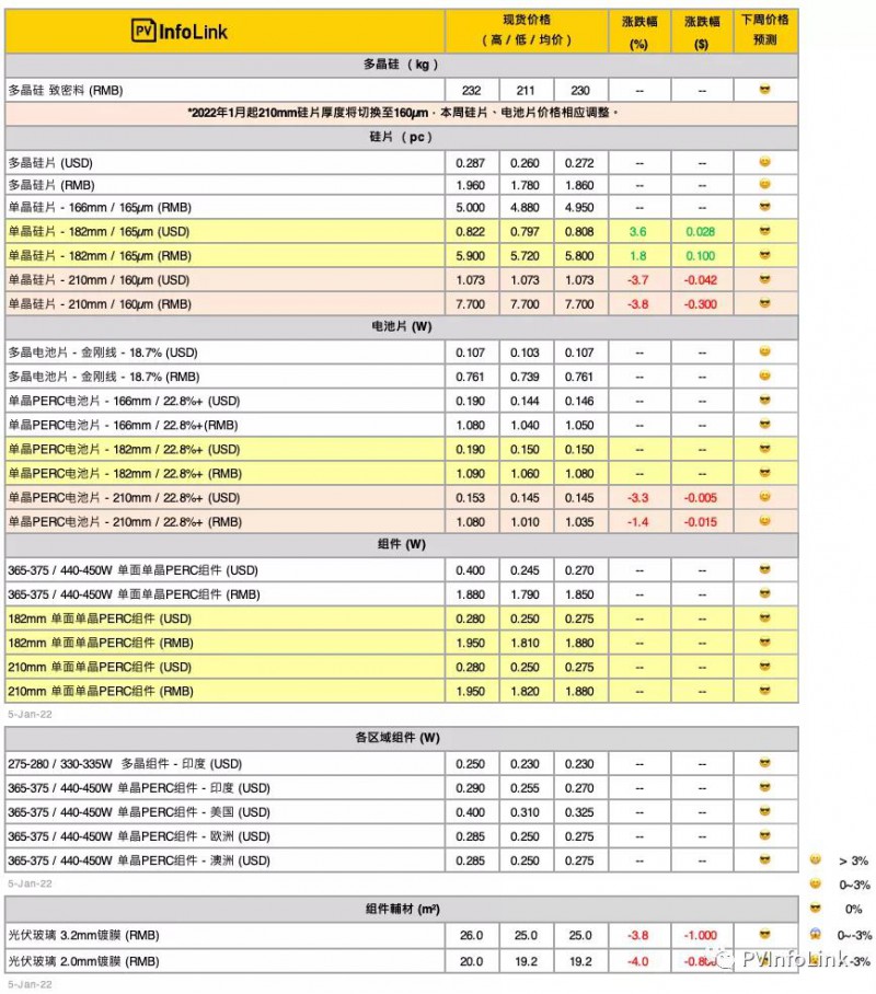 国内组件价格以当周交付价格为主,均价主要统计以集中式、招开标项目之一线厂家价格为主,高价将以分布式项目为主,而低价将反映二线厂家价格为主。