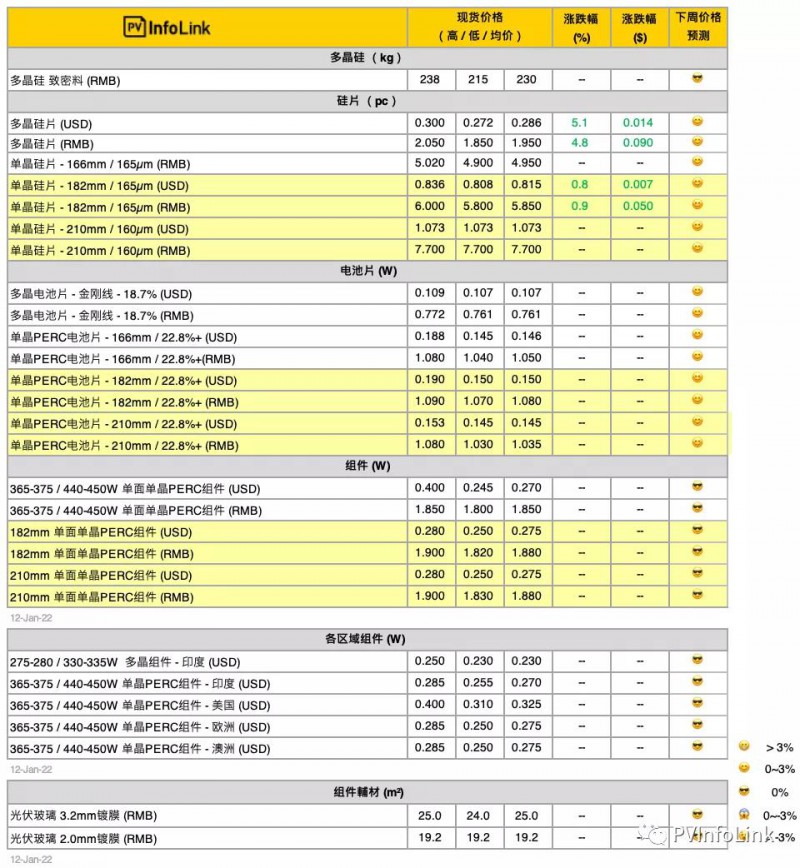 PV Infolink的现货价格主参考超过100家厂商之资讯。主要取市场上最常成交的“众数”资料作为均价(并非加权平均值)、但每周根据市场氛围略有微调。