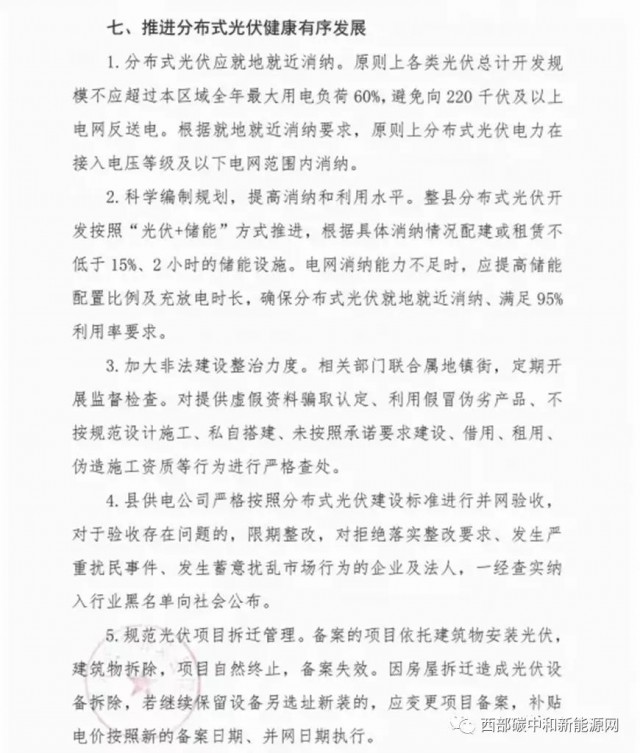此外,整县分布式开发按照“光伏+储能”方式推进,根据具体消纳情况配建或租赁不低于15%、2小时的储能设施。电网消纳能力不足时,应提高储能配置比例及充放电时长,确保分布式光伏就地就近消纳、满足95%利用率要求。