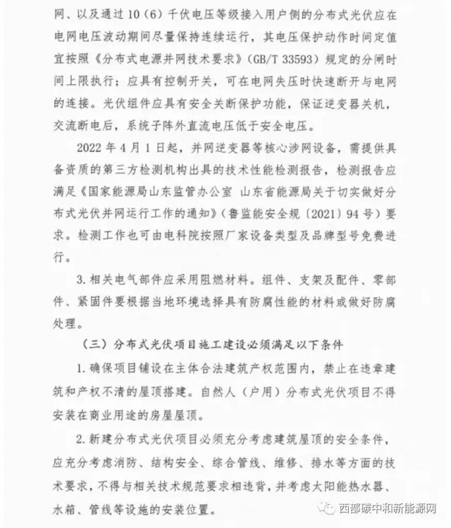 山东省济南市平阴县发改局印发《关于进一步加强分布式光伏项目备案、建设及并网管理的意见》,文件提出分布式光伏应就地就近消纳。原创上各类光伏总计开发规模不应超过本区域全年最大用电负荷60%,避免向220千伏及以上电网反送电。根据就地就近消纳要求,原则上分布式光伏电力在接入电压等级及以下电网范围内消纳。