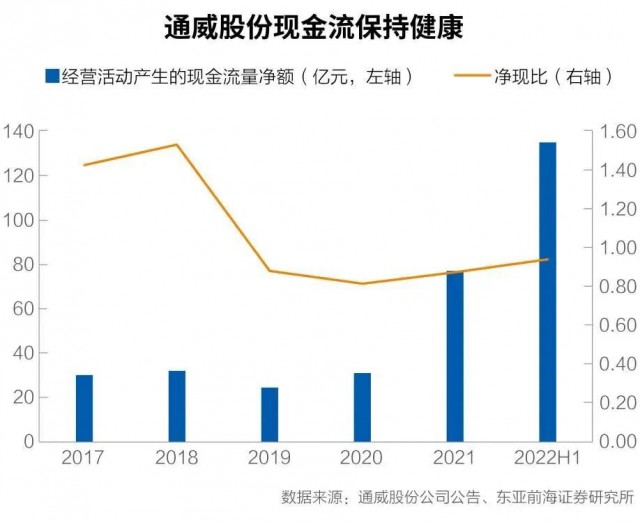 彭澎认为:“过去三年,通威在硅料端积累了非常高的现金利润,这些利润都是现金,都是已经兑现了的。那么通威如今在进入组件之后,有足够的‘子弹’来推这个市场,也能承受比较长周期的市场培育阶段。这个市场培育阶段就是通威从一个组件新品牌,到客户接受的这段时间。”
