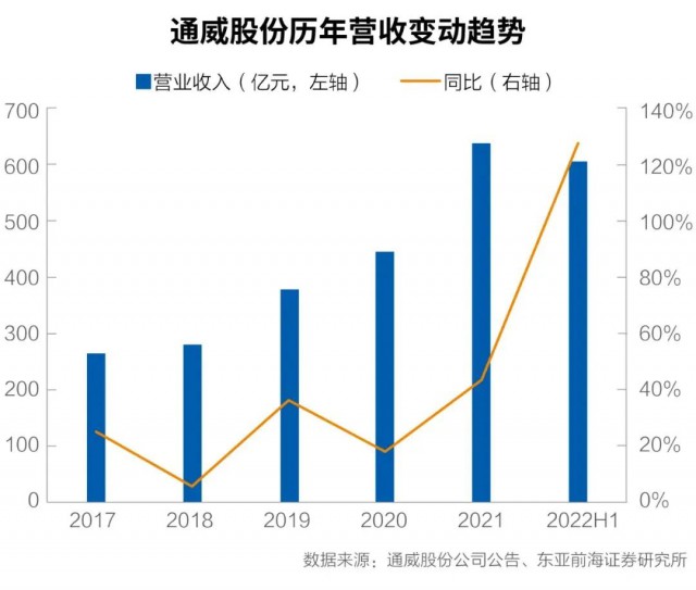 9月22日,通威股份发布公告,公司拟与盐城经开区管委会签署高效光伏组件制造基地项目投资协议书,拟投建25GW高效光伏组件制造基地项目,建设周期为24个月,预计固定资产投资额约为40亿元。