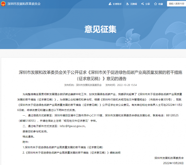 日前,广东省深圳市发改委印发《深圳市关于促进绿色低碳产业高质量发展的若干措施(征求意见稿)》,文件明确,重点支持可再生能源、核能、氢能、安全储能、智慧能源、能源互联网等清洁能源领域,高效电机与变频器、半导体照明、节能服务、先进环保、资源循环等节能环保领域,新能源汽车整车制造、动力电池与驱动控制、充换电设施、自动驾驶、智慧出行等新能源汽车领域,生态农业、生态保护与修复等生态环境领域,建筑节能、绿色建筑、绿色交通、环境基础设施等基础设施绿色升级领域,低碳咨询、绿色低碳项目运营、产品认证与推广等绿色低碳服务领域。