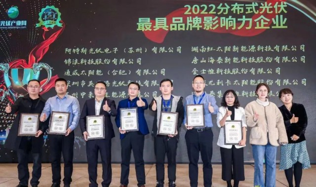 会议同期举办了「PV TOP 50」2022 光伏创新榜颁奖典礼,旨在表彰 2022 年度 “最具创新力”标杆企业!阿特斯凭借在分布式领域的领先优势,再获业界认可,在本次大会上荣膺“2022分布式光伏最具影响力企业”和“2022分布式光伏最具创新组件企业”两项大奖。