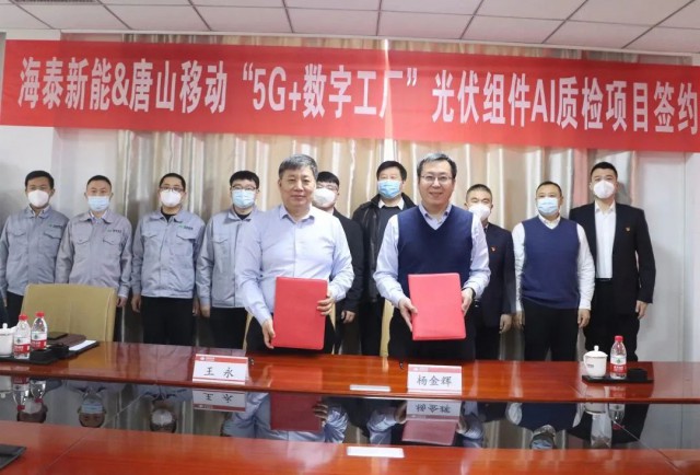 2023年1月10日,海泰新能与中国移动完成了“5G+数字工厂光伏组件AI质检项目”签约仪式,并成为河北省首家5G+数字化工厂的光伏组件企业。