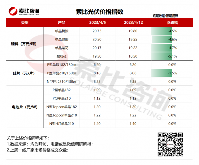 1、数据均为索比咨询整理,价格为均价,有疑问请联系我们,欢迎探讨
