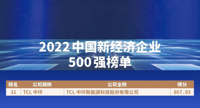近日,中国企业评价协会发布“中国新经济企业 500 强”榜单,TCL中环凭借在硅材料领域的发展实力与市场地位上榜,位列第31位,排名较去年跃升57位。