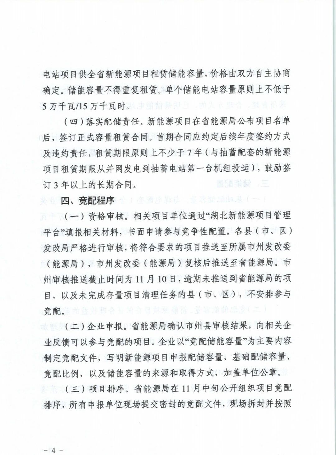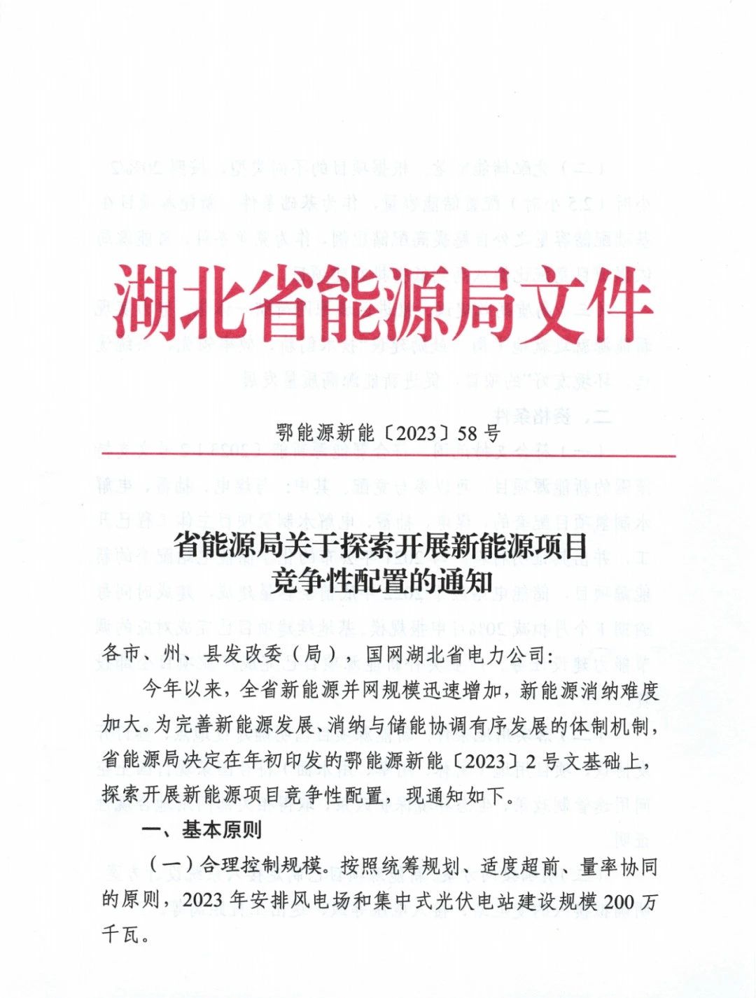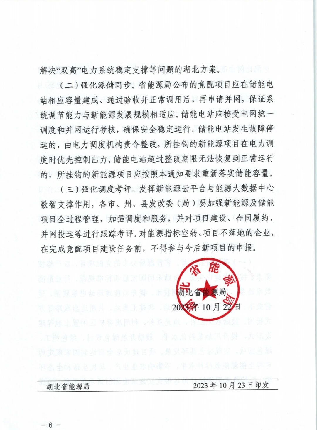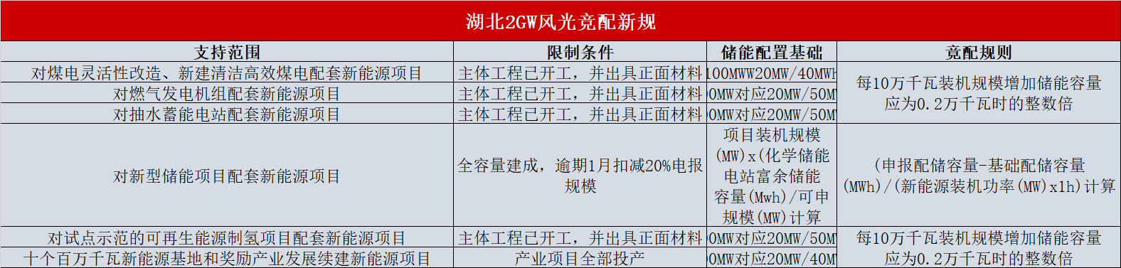 10月23日,湖北省能源局印发《关于探索开展新能源项目竞争性配置的通知》,拟安排2GW风、光项目指标,并以储能配置比例作为竞争优选条件。