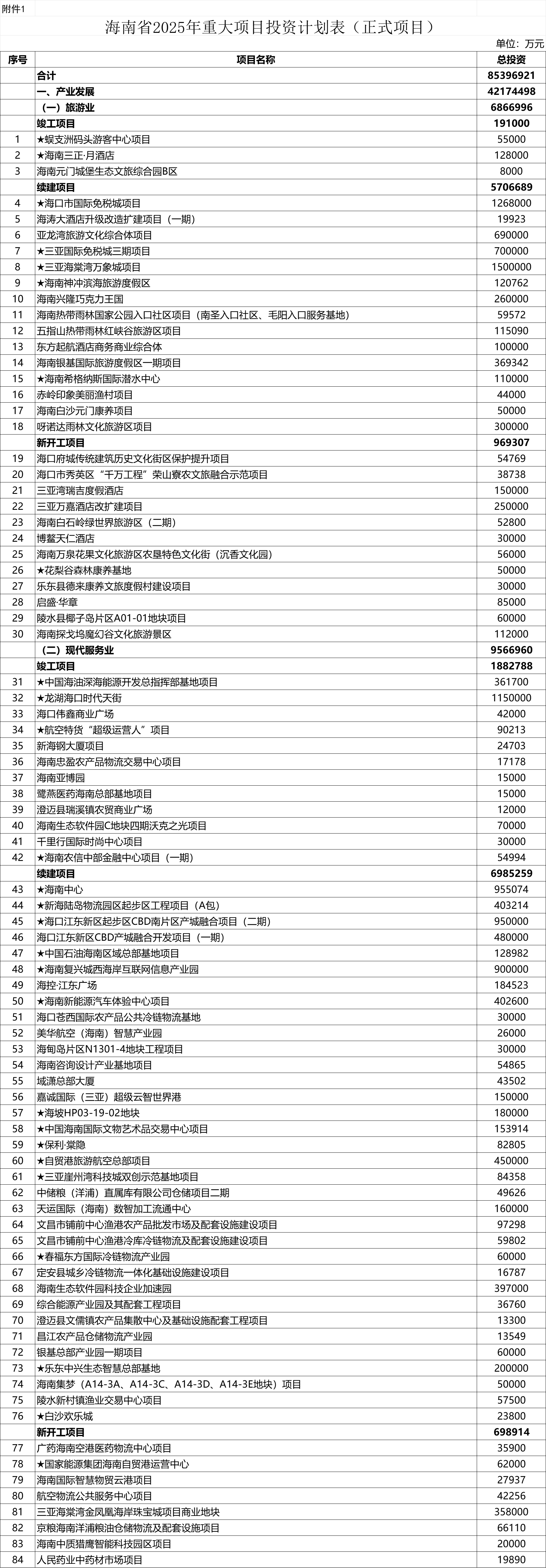 附件:1.海南省2025年重大项目投资计划表(正式项目)