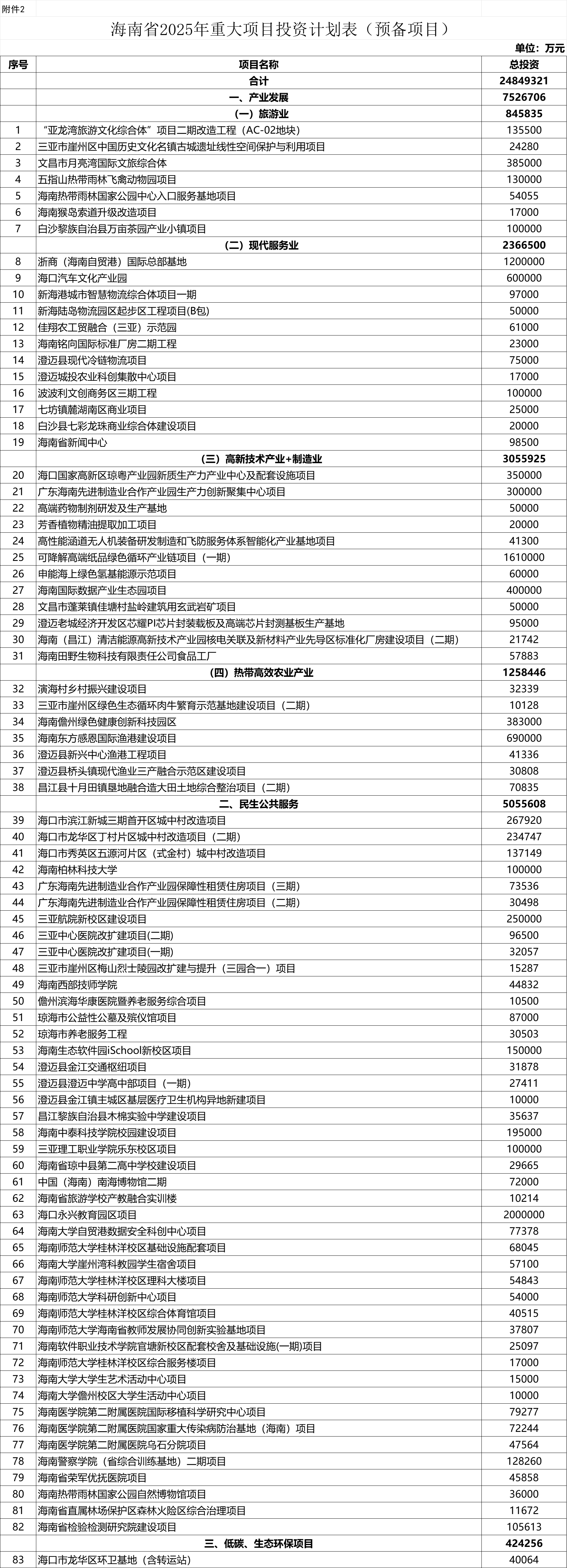 2.海南省2025年重大项目投资计划表(预备项目)