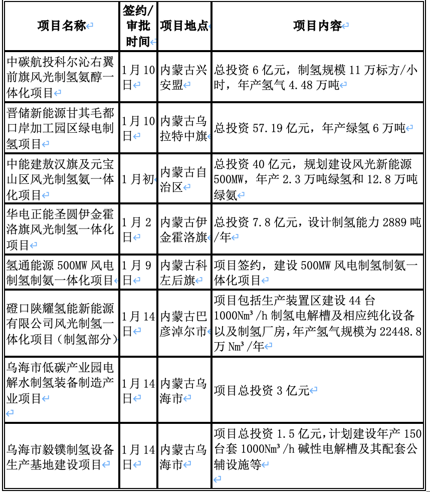 内蒙古作为国内氢能产业发展的核心阵地,近年来在绿氢的投资规模和项目数量上都遥遥领先于全国其他省份,其中有多个百亿规模的绿氢项目,如乌兰察布10万吨/年风光制氢一体化项目、中天合创风光融合绿氢化工示范项目等。