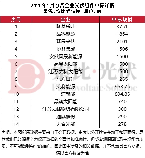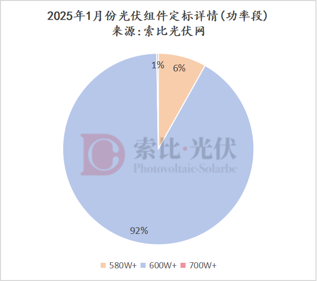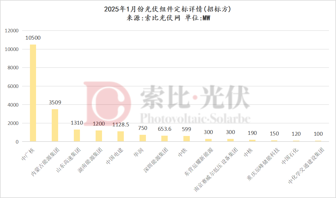 组件方面,通过梳理近期中标详情,索比光伏网发现,2025年1月份有超21.15GW光伏组件定标。其中: