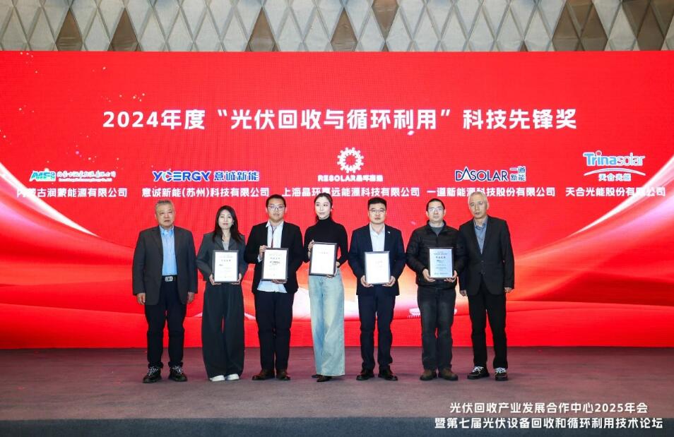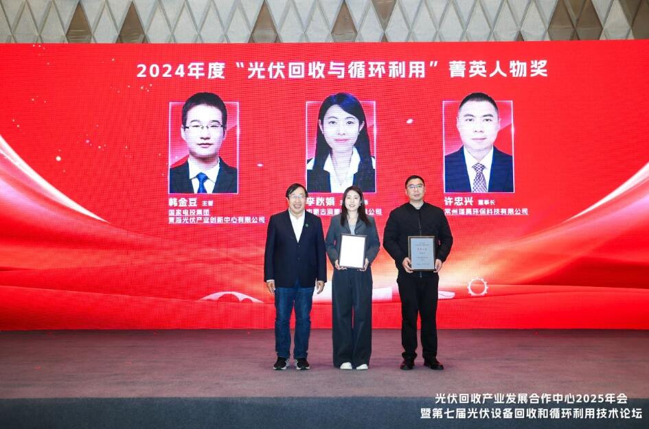 2月21日下午,“光伏回收产业发展合作中心2025年会暨第七届光伏设备回收和循环利用技术论坛”在嘉兴秀洲盛大召开。会上举行了隆重的2024年度“光伏回收与循环利用”优秀集体和菁英人物颁奖仪式。