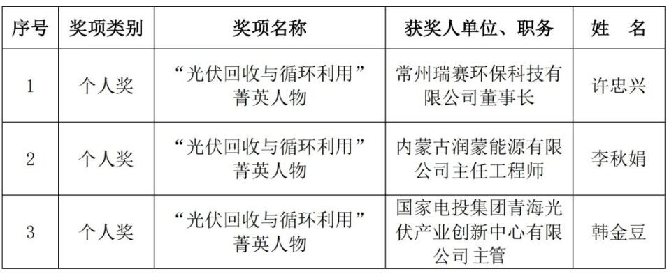 ➤“光伏回收与循环利用”菁英人物奖设立用以奖励在光伏回收材料及技术研发、装备研制、产业示范、政策及标准推广、科普宣传、产业推广、行业服务等方面具备专业技能、杰出贡献、创新精神、管理能力以及显著影响力的优秀个人。