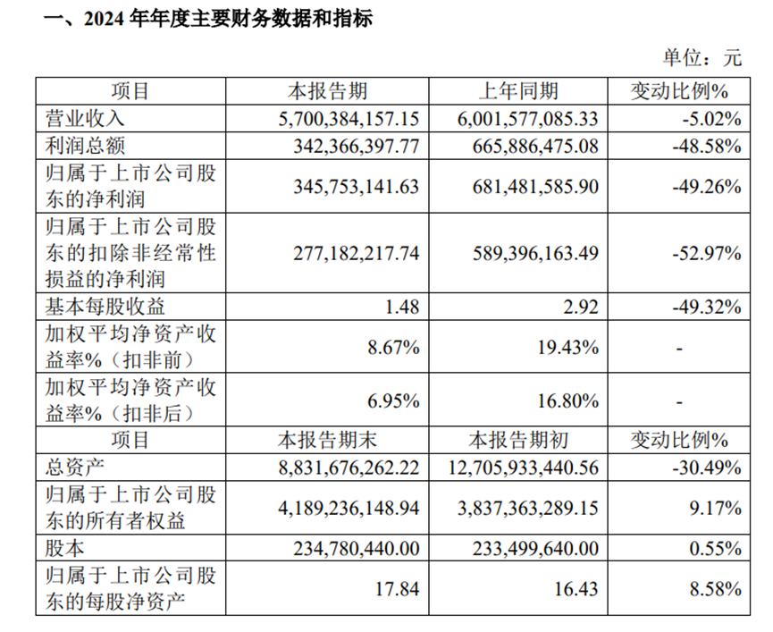 2月26日,连城数控正式发布了2024年年度业绩快报。报告期内,公司实现营业收入57.00亿元,同比下降5.02%;归属于上市公司股东的净利润为3.46亿元,同比下降49.26%。