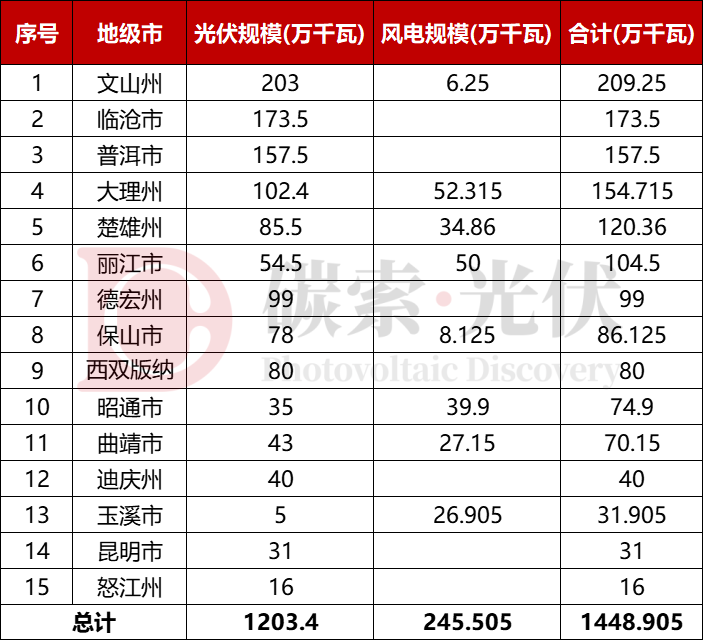 经梳理,此次公布的清单中项目分布于15个地级市,其中,保山市项目规模最大,超过2GW;临沧市、普洱市、大理州、楚雄州、丽江市规模均在1GW以上。具体见下表: