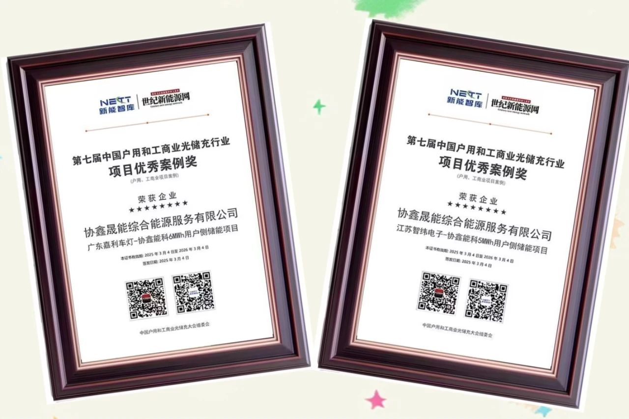 协鑫晟能综合能源服务有限公司旗下江苏智纬电子5兆瓦时用户侧储能项目、广东嘉利车灯6兆瓦时用户侧储能项目荣获优秀案例奖。