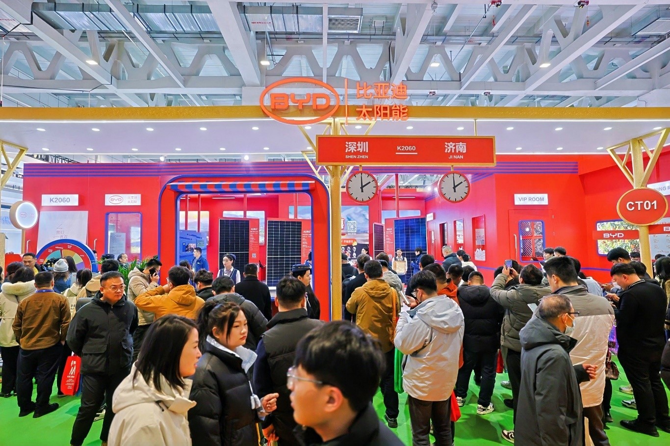 本届“太阳能展”由山东省太阳能行业协会、山东丞华能源科技有限公司联合组织举办,展示面积50000平方米,设置了光伏、储能、充换电、光伏建筑一体化、分散式能源多能互补、产学研及金融等多个特色展区,全面覆盖太阳能光伏、储能、风能等新能源全产业链。现场不仅汇聚了中铁、华为、美的、比亚迪、浙商中拓、海尔、通威、建发等8家世界500强企业,更吸引了协鑫、隆基绿能、晶科、天合光能、晶澳、阳光电源、上海电气、固德威、首航、德业、海泰、禾望等23家全球新能源500强企业,以及 TCL、正泰、特变电工等17家中国民营500强企业,形成了“头部企业引领+创新企业突围”的产业矩阵。