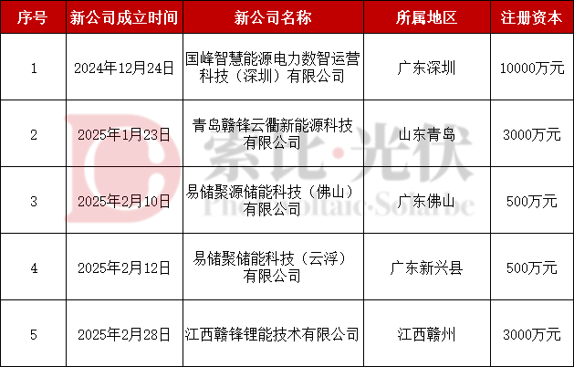 其中,3家新公司成立地点在广东,另外2家位于山东、江西,注册资本共计1.7亿元。