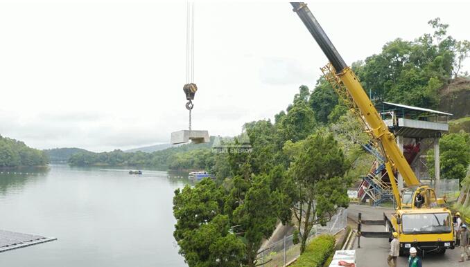 该系统是迈贝特与印尼能源巨头PLN首次合作的水上漂浮试点项目。面对时间紧、任务重的项目建设要求,迈贝特项目人员以专业、高效的服务,全程配合项目方及施工队,在30天内高效完成672块组件及30块重力锚块安装,实现项目按期并网。