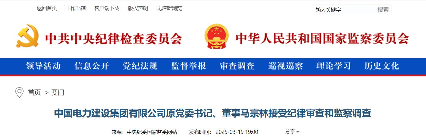 据中央纪委国家监委驻国务院国资委纪检监察组、江西省纪委监委消息:中国电力建设集团有限公司原党委书记、董事马宗林涉嫌严重违纪违法,目前正接受中央纪委国家监委驻国务院国资委纪检监察组和江西省南昌市监委纪律审查和监察调查。