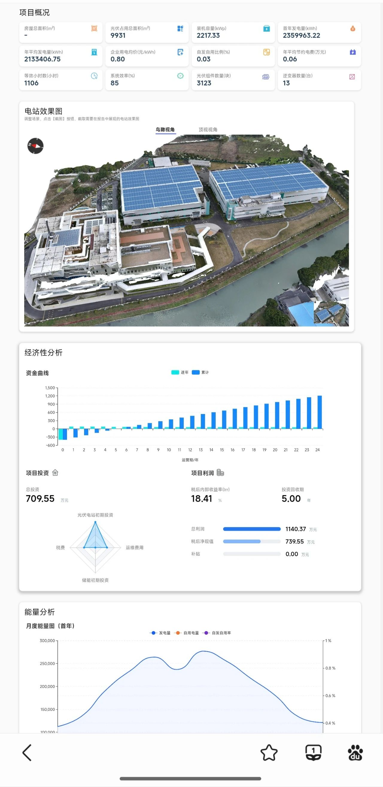 河海安能SolarPV-X 的仿真报告界面支持一键分享项目报告,被分享者可免登录查看项目报告。手机端用户也能轻松访问,随时随地查看项目内容,打破设备限制。