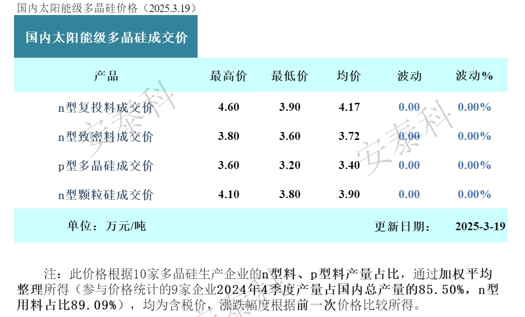 3月19日,中国有色金属工业协会硅业分会发布了太阳能级多晶硅最新成交价格。