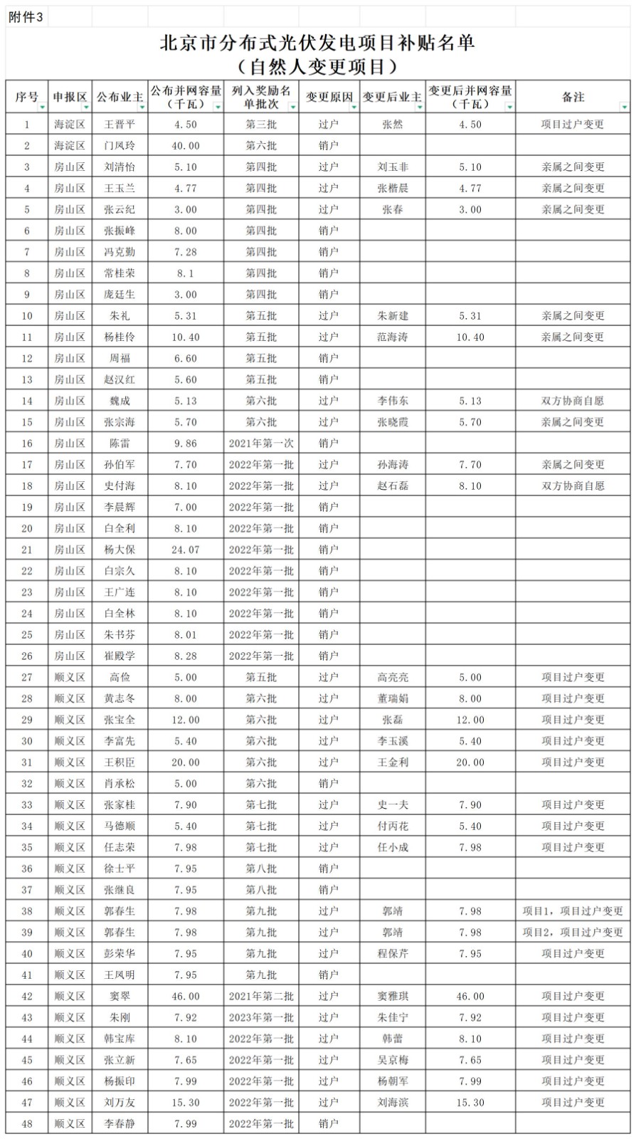 3.北京市分布式光伏发电项目补贴名单(自然人变更项目)
