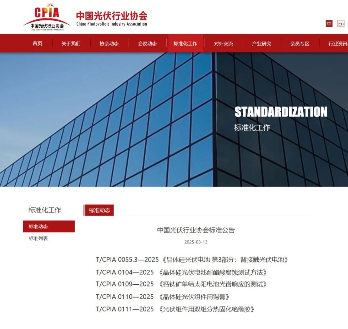 近日,中国光伏行业协会发布了2025年第1号公告,由隆基绿能科技股份有限公司(以下简称“隆基绿能”)主导制定的背接触光伏电池等五项团体标准,于2025年3月13日获批发布,将于2025年3月30日实施。标准实施后将填补光伏行业多个产品和测试方法空白,引领行业健康可持续发展。