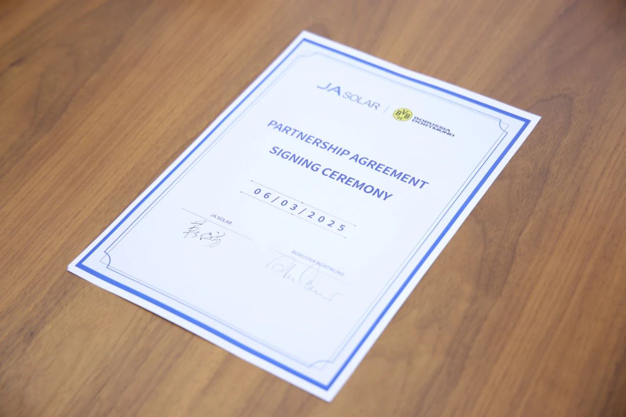 自进入欧洲市场以来,晶澳科技全黑组件凭借出众的美学设计已赢得家庭及工商业用户的广泛认可。此次晶澳科技与多特蒙德足球俱乐部达成合作,不仅意味着两大行业领军企业围绕可持续发展已展开深度协同,更彰显了晶澳科技组件产品在欧洲市场的卓越适用性与竞争力。