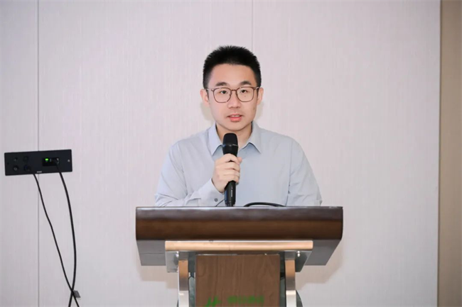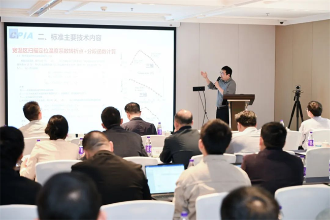 杭州纤纳光电科技股份有限公司联合创始人、CTO颜步一作为主办单位代表致辞。他强调,钙钛矿光伏行业正处于商业化应用的关键节点,纤纳光电在钙钛矿研发、生产和应用领域已取得一系列成果,但与行业同仁都面临着测试方法和评判标准的不统一等问题,团体标准的制定能够及时填补这一空白。他呼吁各位专家畅所欲言,与会同仁充分交流,共同开创钙钛矿行业的美好未来。
