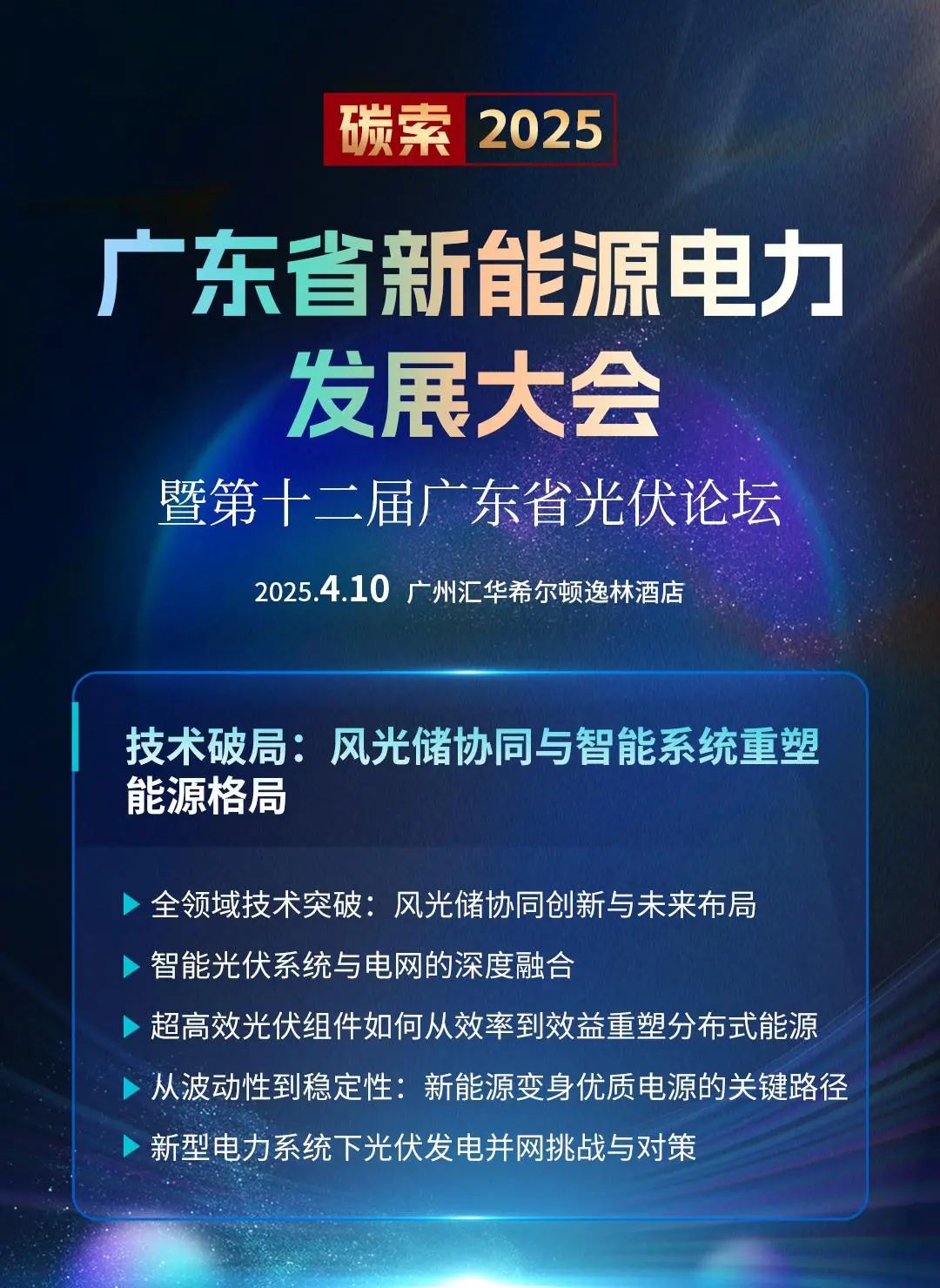 由中山大学、碳索新能、索比光伏网、永光新能源主办的广东省新能源电力发展论坛暨第十二届光伏论坛将于4月10日在广州召开。会议将汇聚政产学研精英,围绕光储融合、虚拟电厂、绿电交易等议题,破解消纳与电网升级瓶颈,共探华南新能源高质量发展路径,助力全国能源转型迈向新高度。