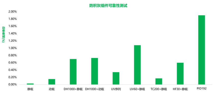 边框设计优化并不影响组件长期可靠性。正泰新能高效防积灰组件已通过DH1000+静载、DH1000+动载、HF30+静载、UV序列、PID192等多项加严测试,组件功率衰减均小于2%,远低于IEC衰减标准要求。