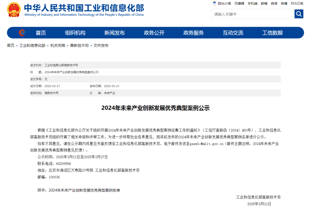 据悉,2024年12月,工信部组织开展2024年未来产业创新发展优秀典型案例征集,对于“标志性产品”的遴选要求是,代表未来产业发展方向,且已实现产业化,能切实体现前沿技术突破并具有良好应用前景的产品。