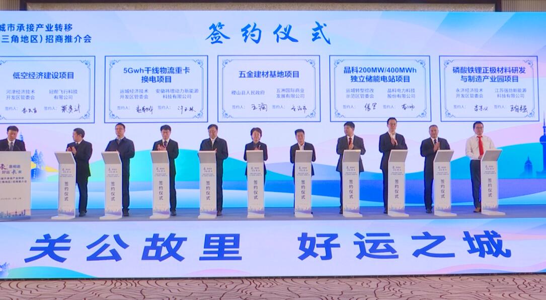 考察期间,运城市承接产业转移(长三角地区)招商推介会盛大举行,晶科科技作为新能源企业代表应邀亮相,并与运城转型综改示范区管委会就运城市盐湖区200MW/400MWh独立储能电站项目达成合作框架意向并签订投资协议。
