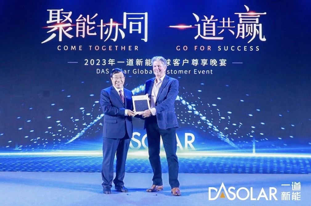 宋登元向马丁格林教授赠送高效TOPCon太阳电池